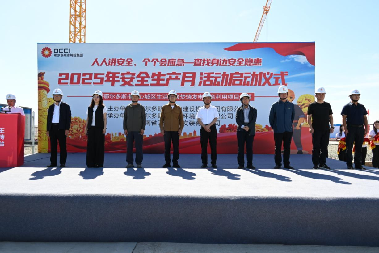 6月5日,市城投集團在鄂爾多斯市中心城區(qū)生活垃圾焚燒發(fā)電綜合利用項目建設現(xiàn)場舉行“人人講安全、個個會應急——查找身邊安全隱患”為主題的“安全生產(chǎn)月”啟動儀式。市國資委三級調(diào)研員廖海東,集團領導班子、各部門、子公司負責人、參建單位代表等參加活動。